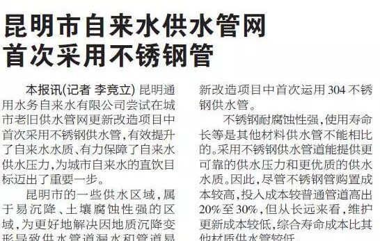 昆明自來水供水管網首次采用304哔咔漫画网址薄壁水管